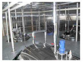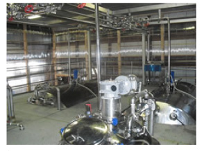 主に大豆を原料として動物用のリキッドタイプ飼料用や、飲用・噴霧用のNS乳酸菌培養液の製造プラント。